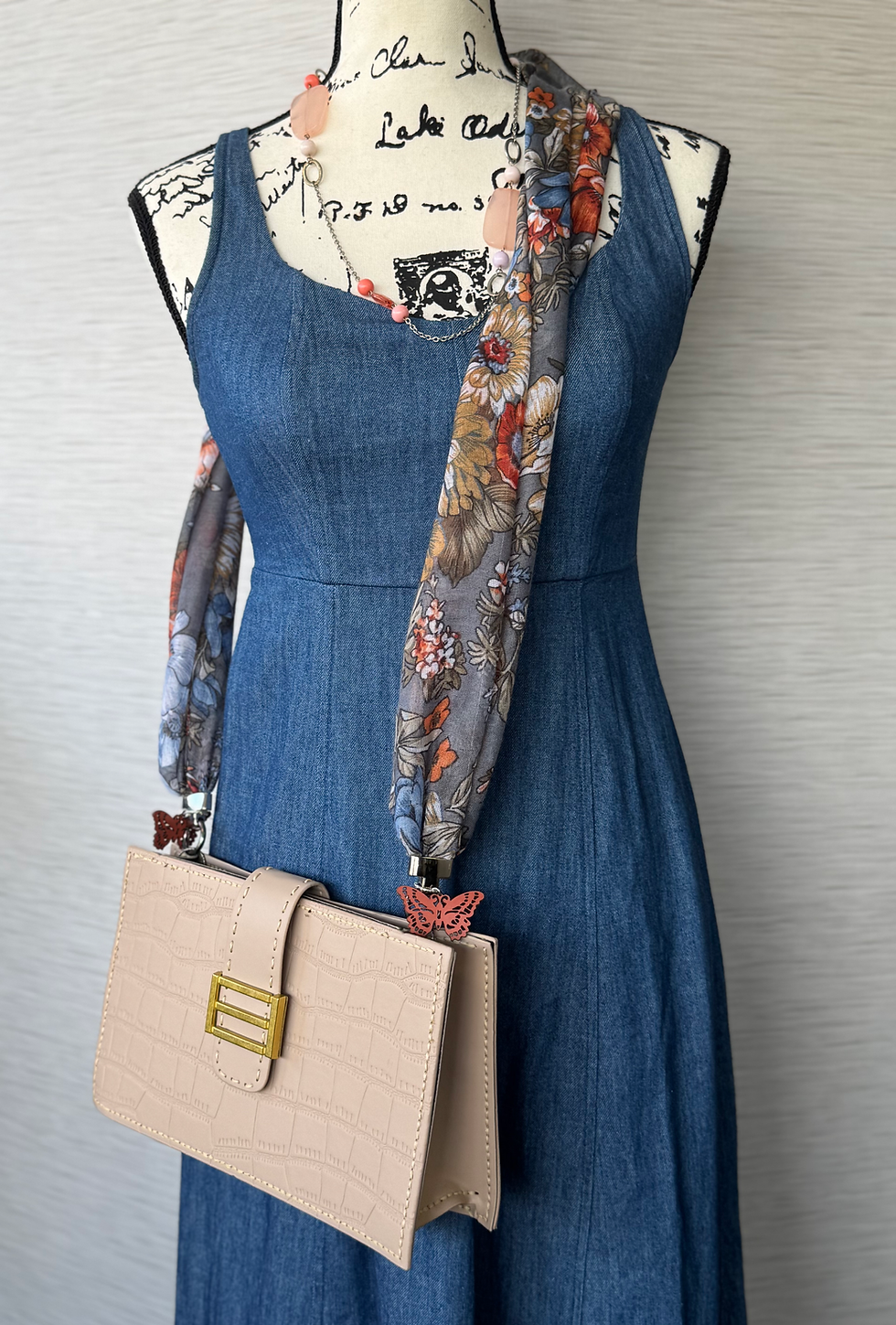 An accessory kit that includes the "Boada" (scarf\bag strap\necklace accent), and the "Sack" (bag) that can all be worn together or seperate. Each "Boada" comes with attachments to connect to your bag, or carry your bag as a Clutch, and wear the "Boada" as a scarf\necklace. Simply slip the Boada over your head and your all set!